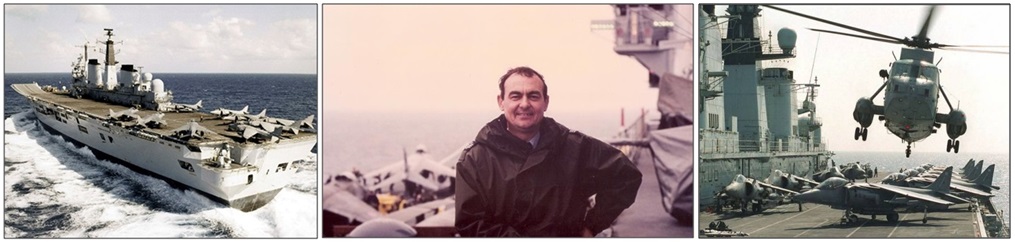 Whilst at the HGSS I was assigned to lead a team of Harrier technicians from a UK RAF Harrier Squadron to support 6 RAF Harriers on board Her Majesty’s Ship (HMS Invincible) one of the UK’s Aircraft Carriers. We boarded the ship in Newcastle on the river Tyne next to my home town Gateshead. It was very dangerous on the flight deck where all of the aircraft were especially when they were taking off and landing. When they were landing vertically we had to hold the chains securing the other aircraft to the deck. However, it was very exciting and I learnt a great deal about the Royal Navy (RN). I did not know that one day I would be on board HMS Invincible again many years later in Singapore. After completing our mission we were flown back to RAF Wittering by Sea King helicopters which belonged to the ship.