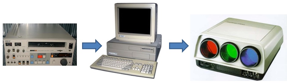 Whilst the Commodore Amiga was an important platform for my vision of Multimedia Training it alone could not produce the Multimedia that I required. This included the integration of Video Tapes using a Sony U-Matic 9600 Video Recorder/Player and the ability to Overlay Text onto the Video at the same time on the display screen. The UMatic Video Recorder/Player was a high quality system using 3/4” tape but most importantly could be controlled via a RS 232C port. Therefore the Display issue and U-Matic control issue had to be solved.