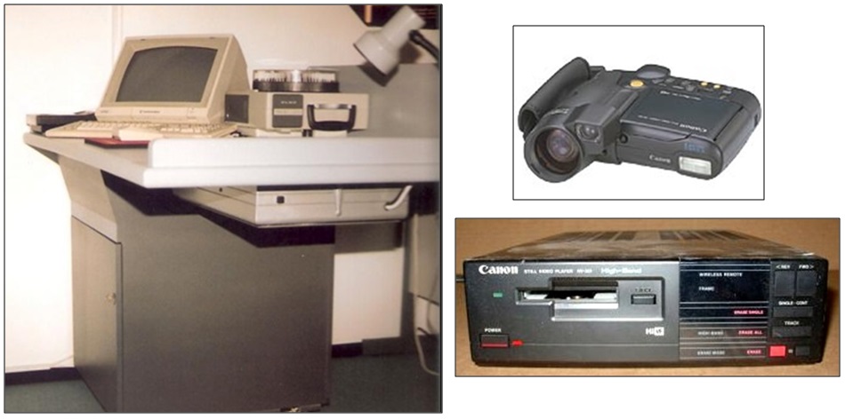 Although I had developed the major Multimedia System this had to be integrated with other existing media systems to allow the Technical Instructors full flexibility in what they could present to the students. Many of the existing lessons were presented with static Overhead Projection Slides and 35mm slides using a slide projector. In addition I also wanted to integrate a new Canon Camera RC-251 ION and the Player RV-301 technology for them to be able to show the whole class close-ups of items of equipment.