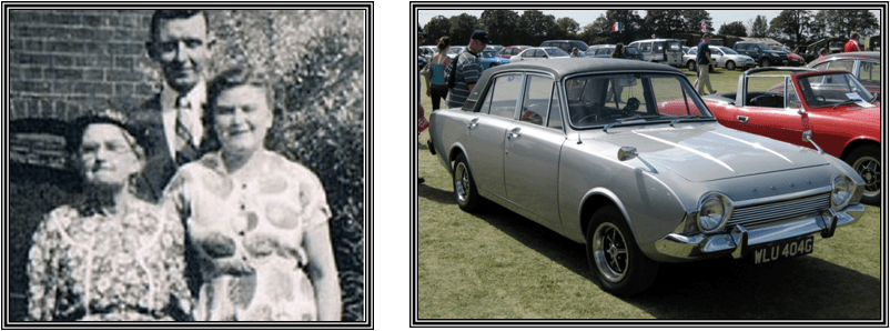 Soon after arriving back in England from Singapore in May 1969, I received a call from my Dad in Gateshead, that my Grandma was dying and could I get back as soon as possible to see her. As my ‘Gran’ as I called her and was very close to me, having looked after me whilst my Mum was working, I tried to hire a car in Bridgenorth where we lived (RAF Bridgenorth). However, because it was June (summer time) all the cars were rented out. I told the garage who rented the cars about my Gran and the owner said I could use one of the cars he had for sale and it was one of the fastest cars at that time. It was a Ford Corsair and because of that I reached my Gran in Gateshead, 200 miles away just in time to see her before she died on the June 18th 1969. Image is my Gran Onions and two of her children Mum and Uncle Ted.