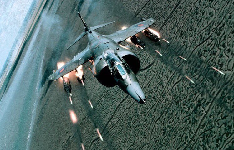 Harrier GR3 Firing all 4 pylons of Sneb Rockets at once known as ‘Ripple Firing’