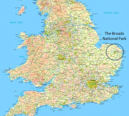 The Broads National Park, also referred to as the Norfolk Broads, is located in East Anglia a part of Anglo-Saxon England which includes the Counties of Norfolk and Suffolk. The traditional Centre Town of East Anglia is the City of Norwich. It was founded around 43AD and became a City in 1094. It is a Cathedral City which was built from 1096 to 1145. It has a large Norman Castle built from 1066 to 1087 and is the Capital of Norfolk County. The Broads are a series of fresh water, 7 Rivers and 63 Lakes (called Broads) that are normally less than 4 metres in depth and most are Non-Tidal, all interconnected and accessed to the North Sea via the Town of Great Yarmouth and the River Yare and River Bure.