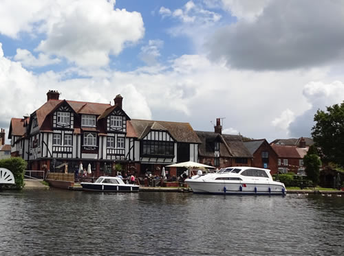 There are many Mooring places on the River or Broad Banks that you can stop and visit the Pubs and Restaurants some of which are shown below. These can be accessed by Land as well as from the Water, where local people also visit. This is especially true during the colder seasons, when the visitors are far less. Also when traveling along in your boat there are many places to see, including the Countryside, different types of River Banks and Houses and Buildings some of which are beautiful Old Thatched Cottages and Houses.