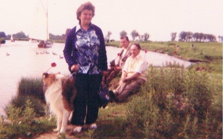 My Mum, Dad, Uncle Ted and my dog Jamie at St Bennets, Rive Bure in the 1950’s