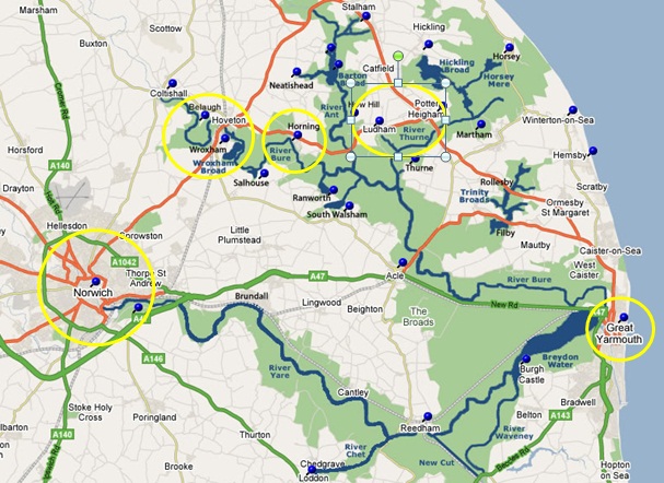 There are many beautiful Rivers like the River Ant at Ludham Bridge and Large and Small Broads such as Wroxham Broad, Ormesby Little Broad. There also Windmills that are used Water Drainage on the Banks of the Rivers.